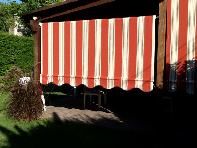 Descripcion: Están pensados especialmente para toda clase de balcones y ventanales, presentándose en dos opciones: vertical tipo telón o separado de la barandilla, en este último caso sobresaliendo medio metro fuera del balcón, gracias a su singular sistema de brazos que se sujetan de forma tensa a la barra inferior del toldo.