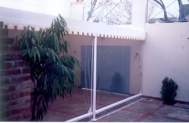 Descripcion: Están pensados especialmente para toda clase de balcones y ventanales, presentándose en dos opciones: vertical tipo telón o separado de la barandilla, en este último caso sobresaliendo medio metro fuera del balcón, gracias a su singular sistema de brazos que se sujetan de forma tensa a la barra inferior del toldo.