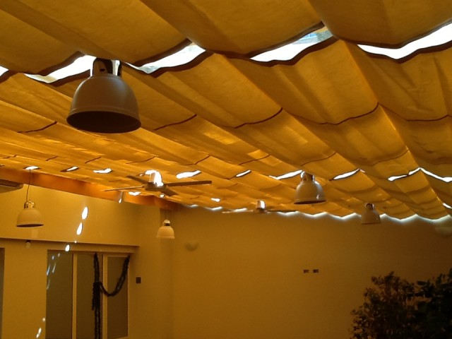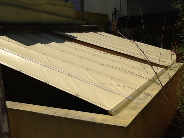 Descripcion: Son toldos planos, ideales para cubrir medianas y grandes superficies. Utilizado preferentemente en terrazas, patios o jardines, combina un estilo único y diferente. Este sistema de toldo corredero se distingue por su particular confección con argollas en toda su superficie, que permite su desplazamiento a través de cables tensados y accionado con cuerdas mediante circuito de poleas. Están concebidas para mantener una máxima sujeción entre los elementos de este y la superficie.