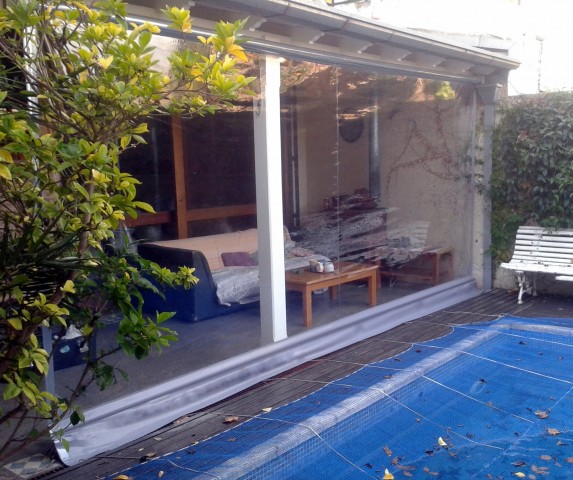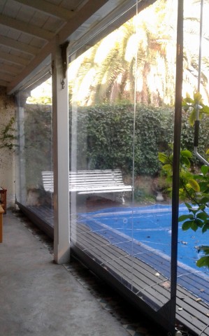 Descripcion: Toldos verticales, con sistema de enrollar manual, en tela VINILICA TRANSPARENTE CRISTAL NRO. 5 con refuerzos en tela VINILICA GRIS
