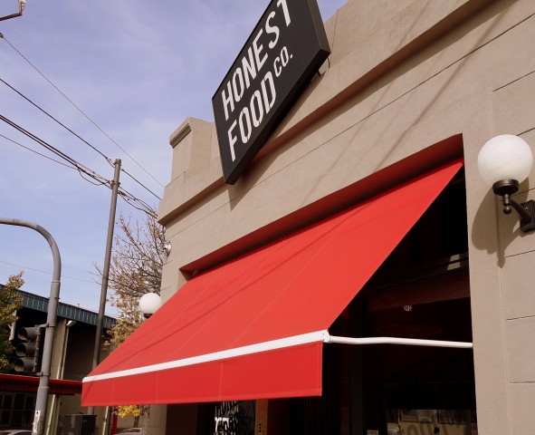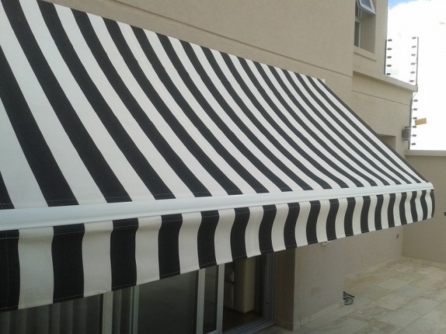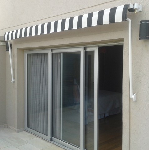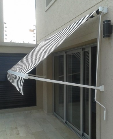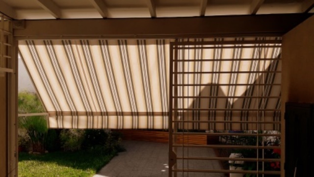 Toldos de Brazo de Punto Recto, con sistema de enrollar manual, en tela Acrílica.